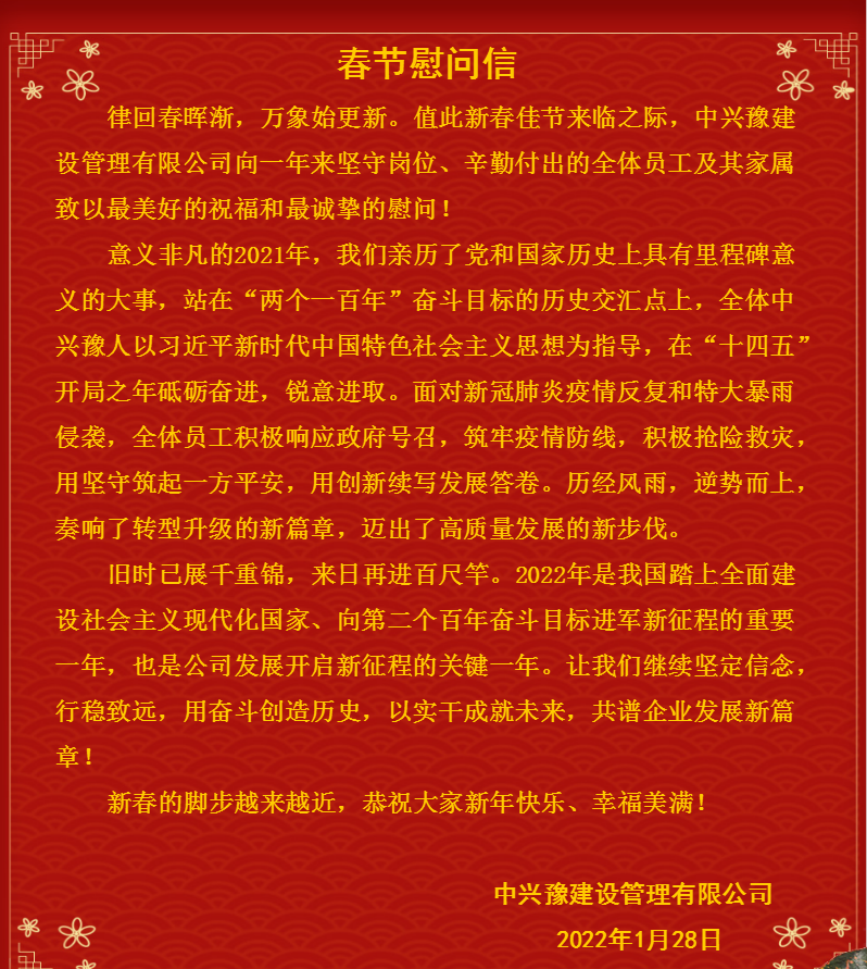 中興豫丨春節(jié)慰問信