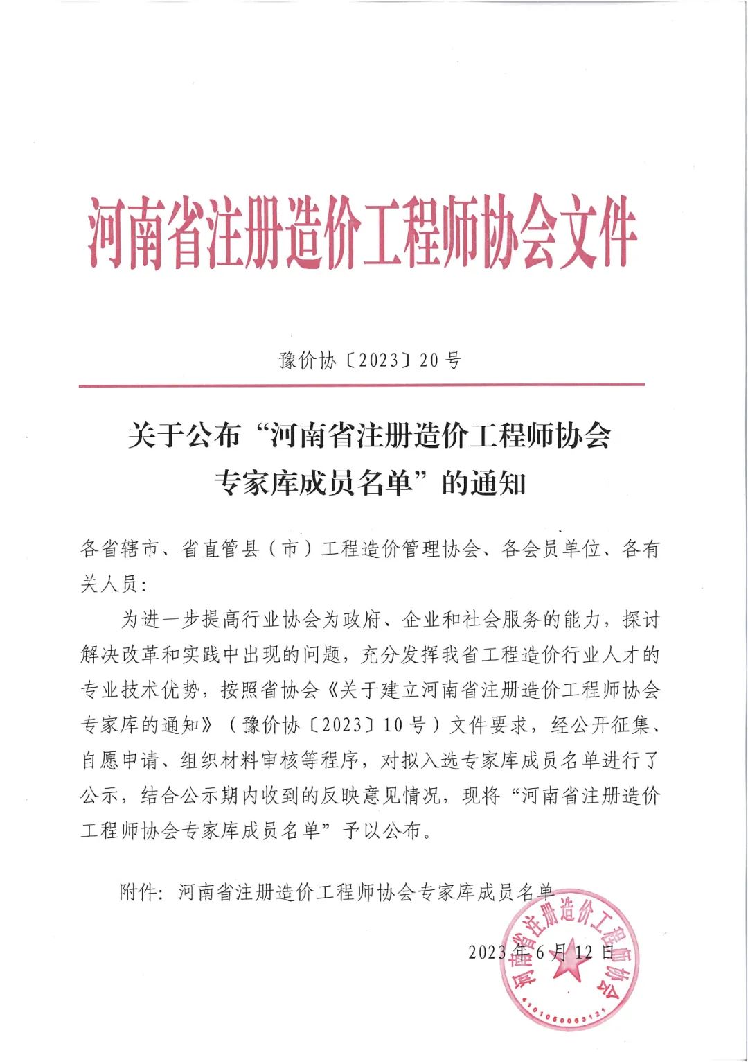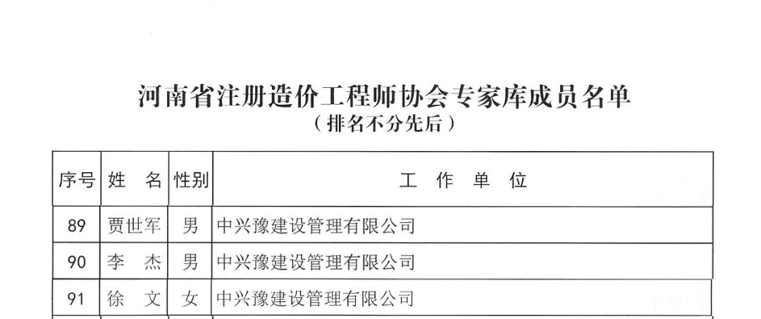 6月12日,河南省注冊造價工程師協(xié)會公布了“河南省注冊造價工程師協(xié)會專家?guī)斐蓡T名單”的通知,我公司賈世軍、李杰、徐文3名注冊造價師順利入圍專家?guī)?/span>。