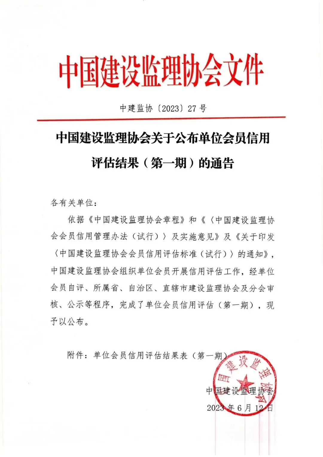 近日,中國(guó)建設(shè)監(jiān)理協(xié)會(huì)公布了《中國(guó)建設(shè)監(jiān)理協(xié)會(huì)關(guān)于公布單位會(huì)員信用評(píng)估結(jié)果(第一期)的通告》(中建監(jiān)協(xié){2023}27號(hào)),中興豫建設(shè)管理有限公司獲評(píng)單位會(huì)員信用評(píng)估AAA級(jí)。