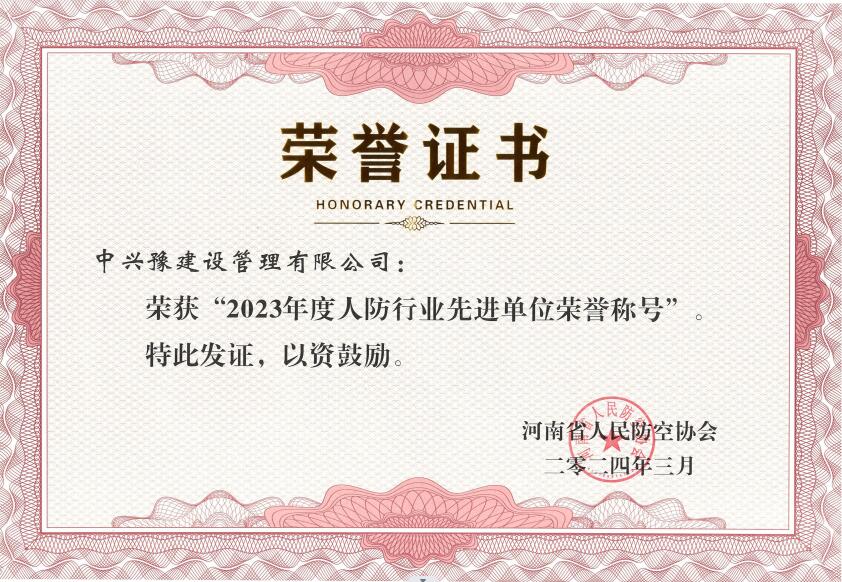 中興豫建設(shè)管理有限公司獲此榮譽(yù),是行業(yè)協(xié)會對我公司工作的高度認(rèn)可與肯定,在今后的發(fā)展中,我們將再接再厲,繼續(xù)發(fā)揮示范引領(lǐng)作用,當(dāng)好“排頭兵”,秉持“科學(xué)公正高效、至誠服務(wù)社會”的經(jīng)營理念,積極踐行誠信自律的優(yōu)良作風(fēng),不斷提升行業(yè)服務(wù)水平,為促進(jìn)我省人防行業(yè)高質(zhì)量發(fā)展貢獻(xiàn)自身力量!
