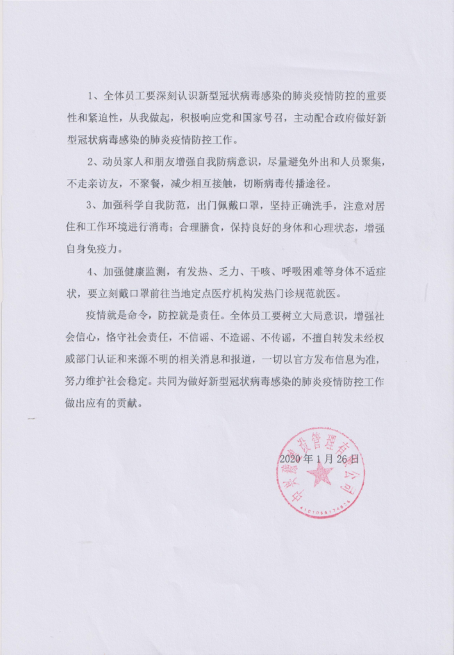 關(guān)于做好新型冠狀病毒感染肺炎疫情防控工作的通知