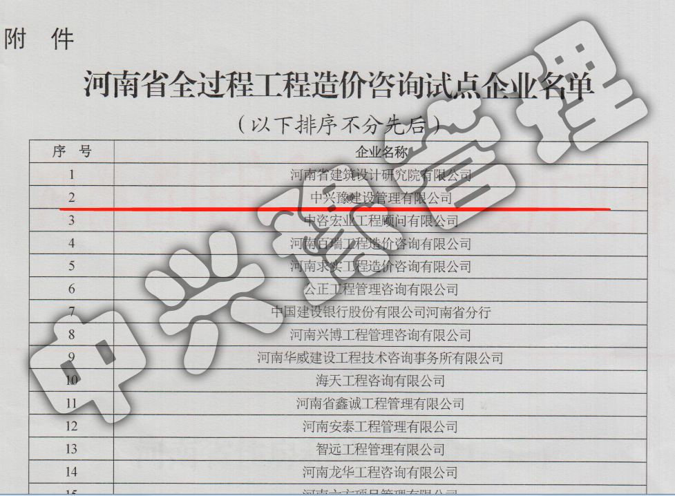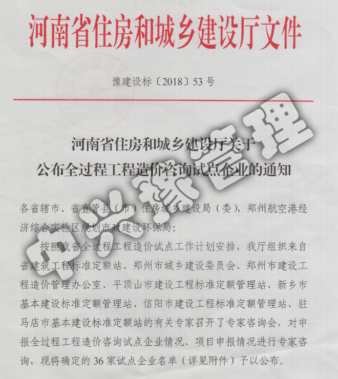 2018河南省住房和城鄉(xiāng)建設(shè)廳關(guān)于公布全過程工程造價(jià)咨詢?cè)圏c(diǎn)企業(yè)文件-公司榮譽(yù)