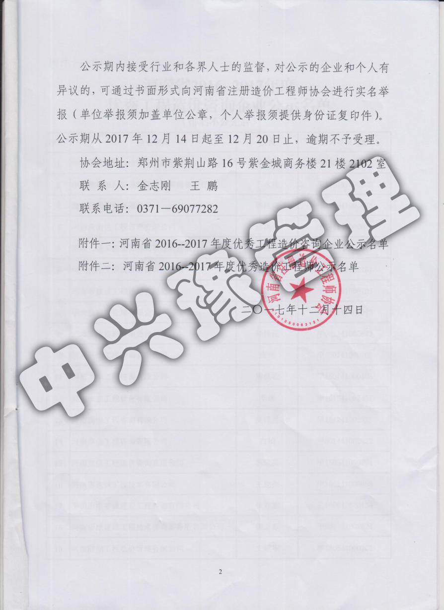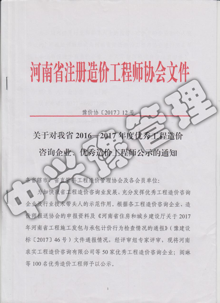 2016-2017年優(yōu)秀造價(jià)企業(yè)-公司榮譽(yù)